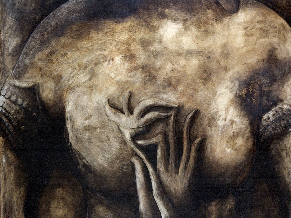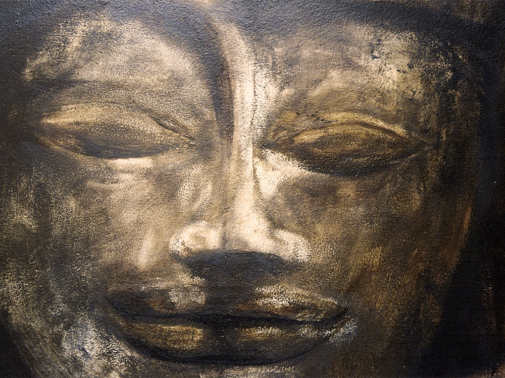 Deze buddha is geschilderd in samenwerking met Emmy Ruis.