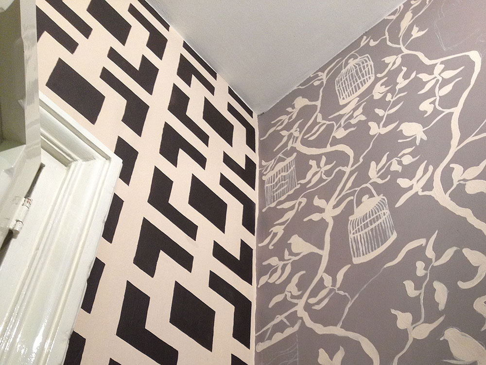 De ene muur heeft een strakke print, de andere daarentegen een wat romantischere sfeer.
