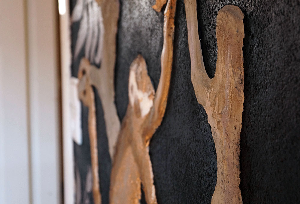 De rest van de afbeelding is geschilderd met acrylverf en daarna afgelakt met een beschermende laklaag.